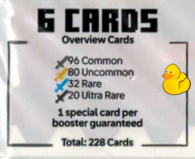 - Ebenfalls gibt es wieder die Angaben zur Seltenheit der verschiedenen Karten auf der Rückseite der Booster. Wie bei der Minecraft Serie 2, sind es wieder die vier Seltenheitsstufen: